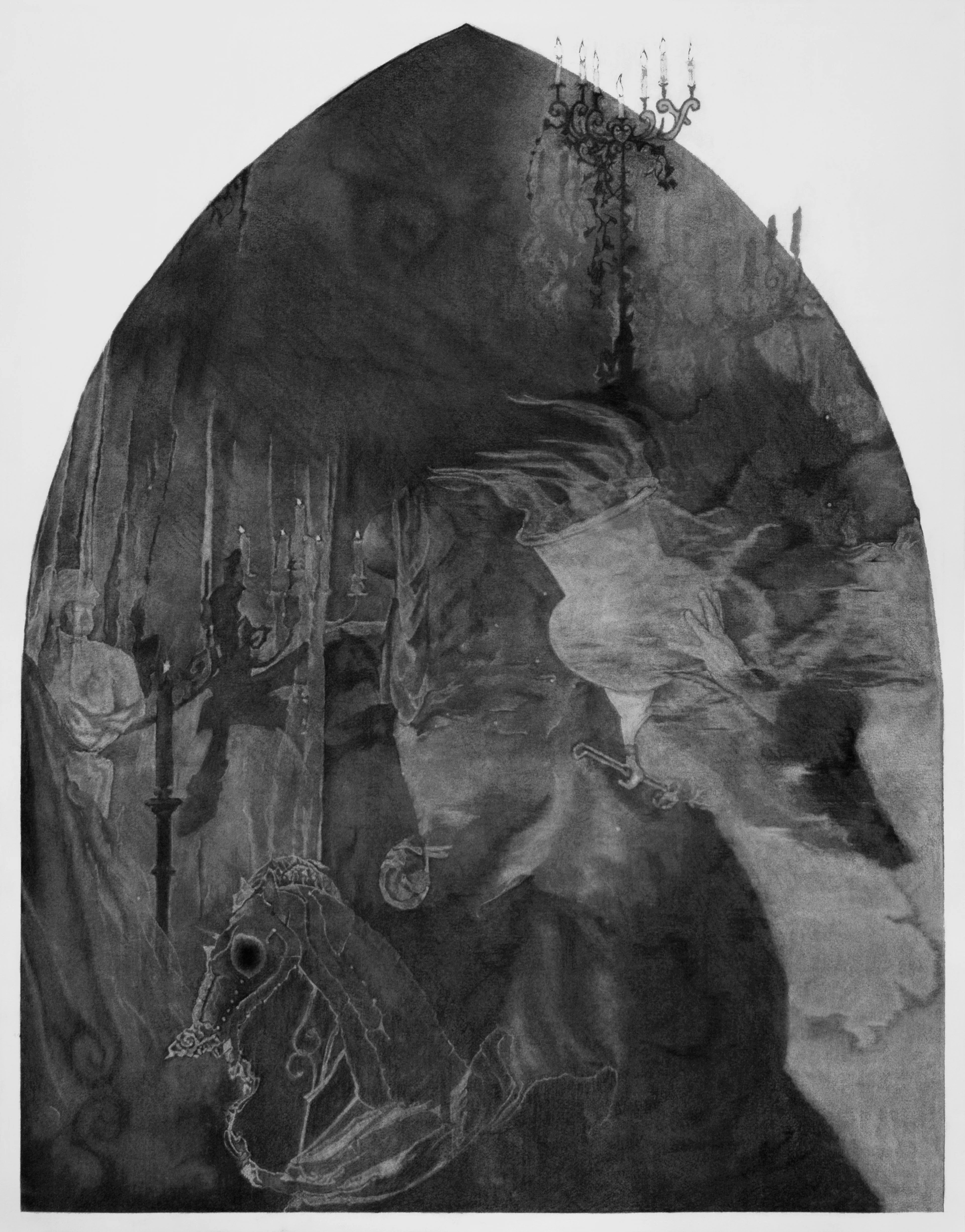 Roxy Ruby is an Australian artist, based in Berlin, who works predominantly in charcoal drawing. She is influenced by film stills, theatrical motifs, mise en scène, costume, archaeology, Greek mythology, fairy tales and other forms of storytelling to explore themes of the subconscious, dreams, identity and transcendence. These themes are articulated through both romantic, surreal, figurative compositions and detailed, layered scenes that depict the metamorphosis of figurative subject matter into abstract dreamscapes. She completed a Bachelor of Visual Arts at Monash University, Melbourne in 2009 and a Graduate Diploma in Museum Studies at Deakin University, Melbourne in 2012. Following her studies, she worked for ten years as a Registrar in the Galleries and Museums sector in Melbourne. In 2021, she relocated to Berlin to focus on her visual arts practice.